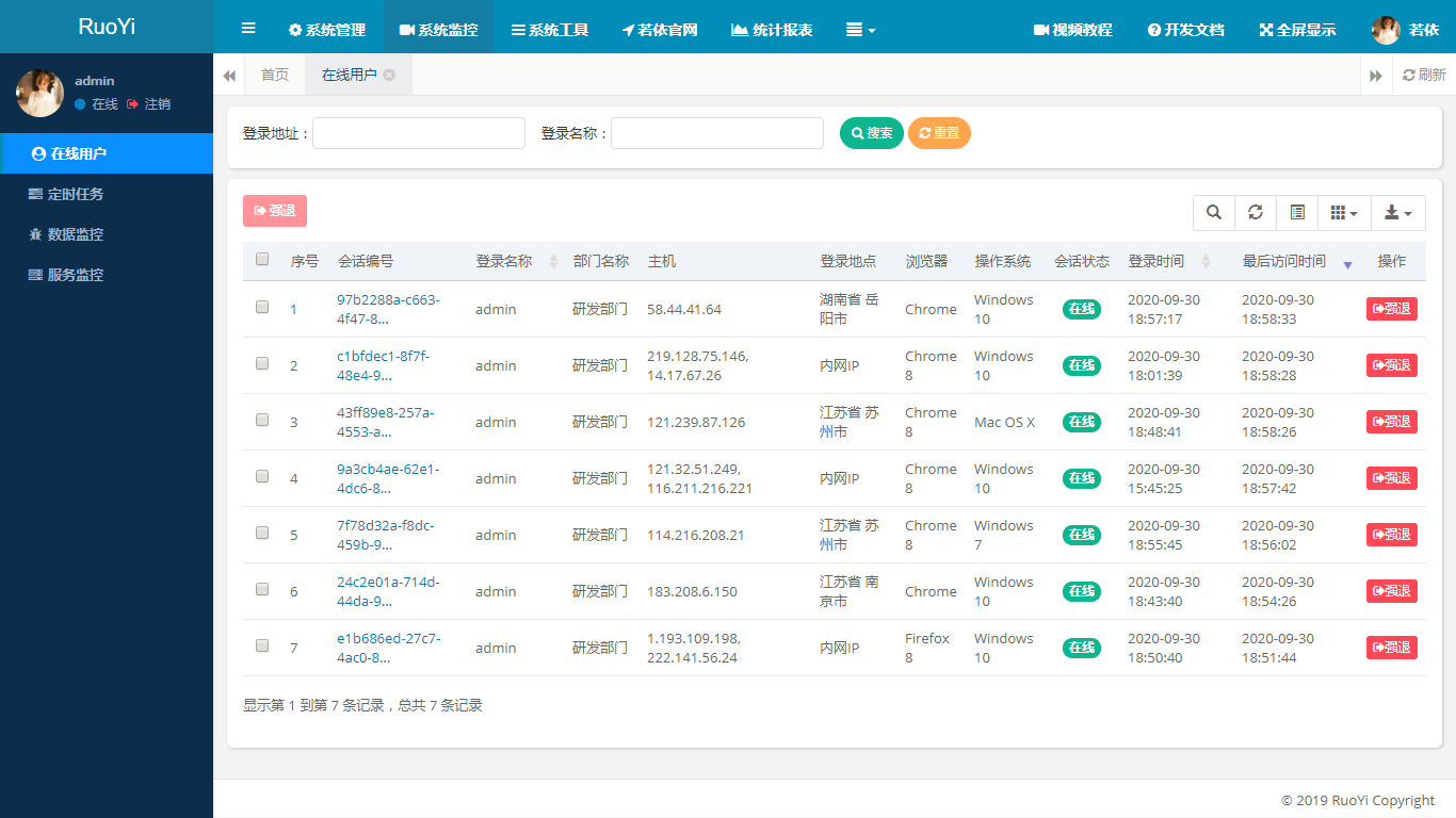 一直想做一款后台管理系统,看了很多优秀的开源项目但是发现没有合适的。于是利用空闲休息时间开始自己写了一套后台系统。如此有了若依。她可以用于所有的Web应用程序,如网站管理后台,网站会员中心,CMS,CRM,OA。所有前端后台代码封装过后十分精简易上手,出错概率低。同时支持移动客户端访问。系统会陆续更新一些实用功能。
